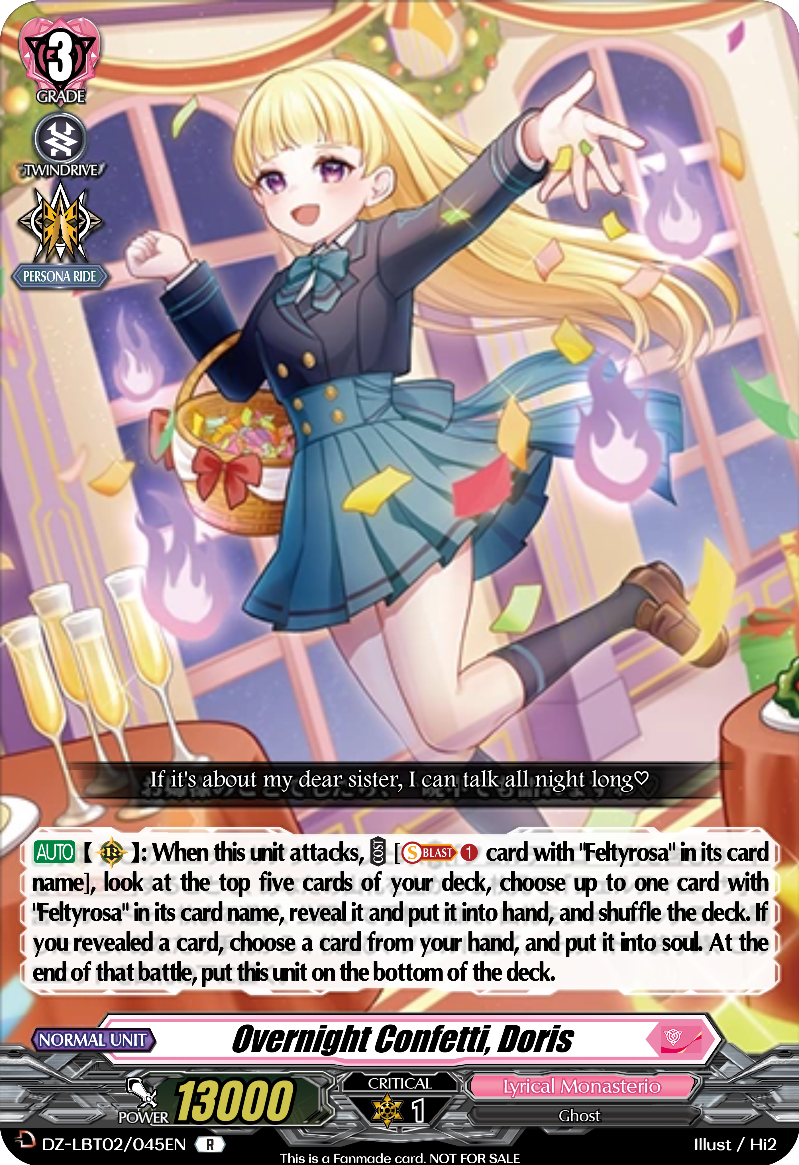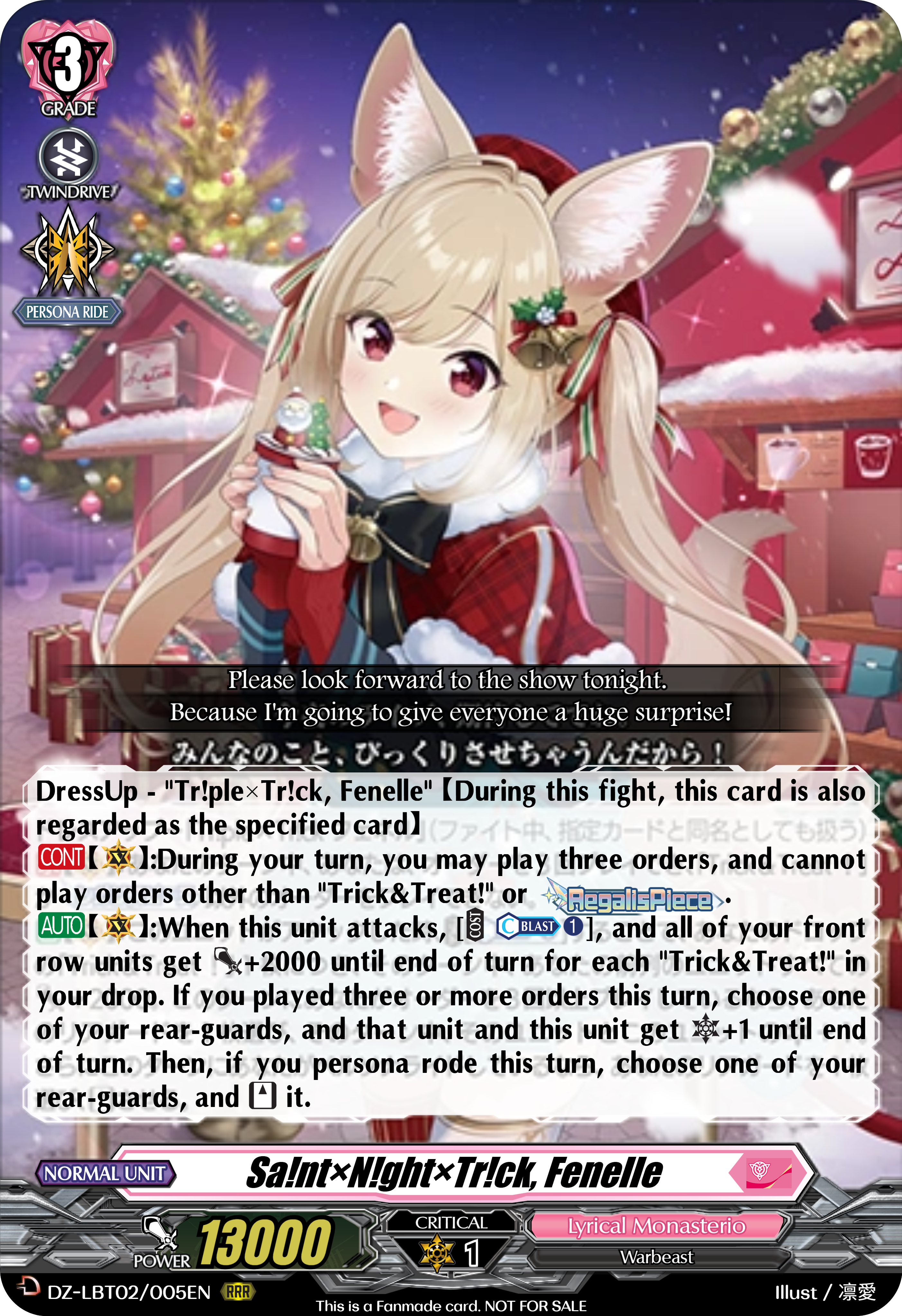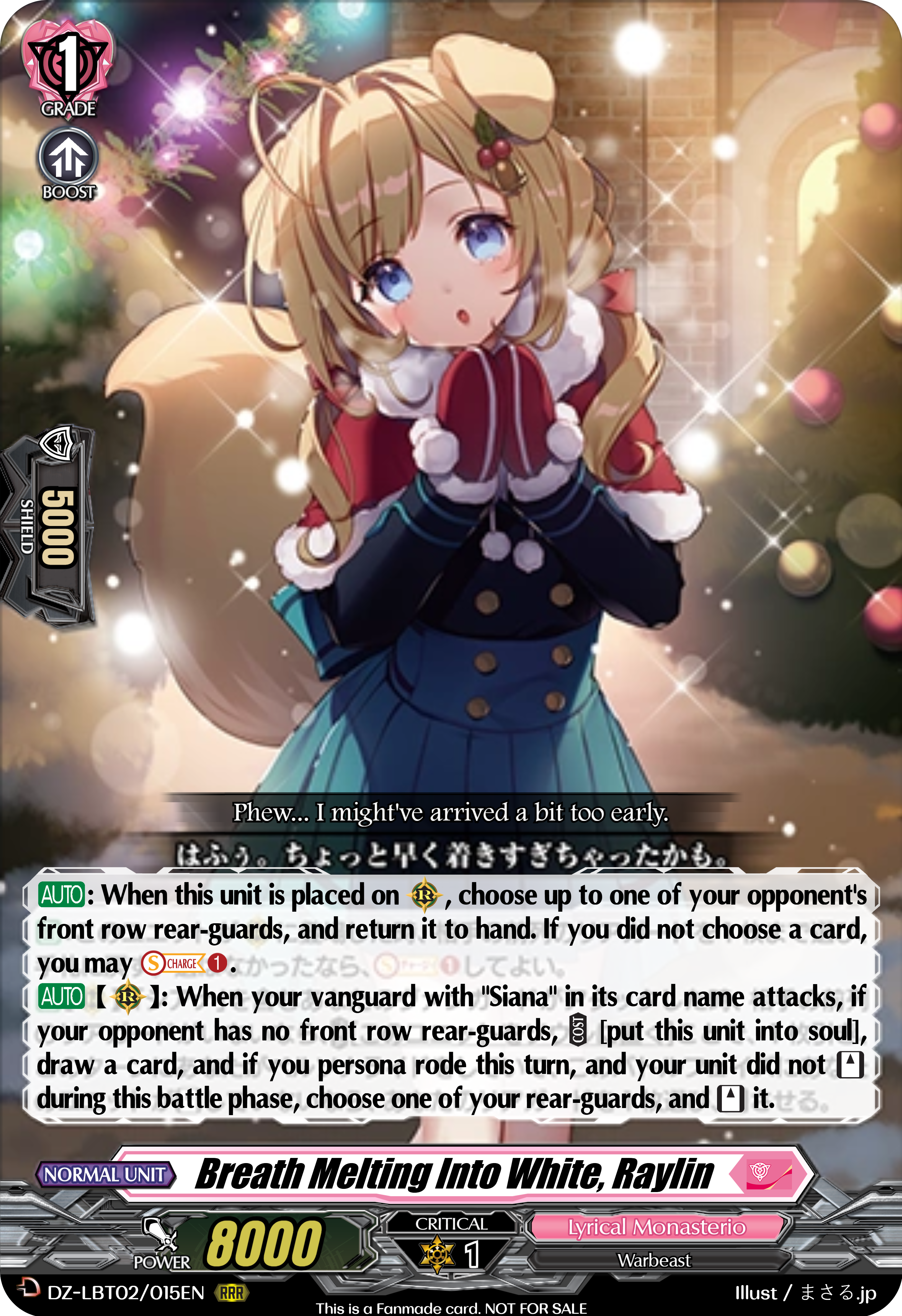 Here are reveals for the cards in VGE-DZ-LBT02 Season of Wonders! Listed are units featuring Dress Up units like Siana, Charmout and Fenelle!